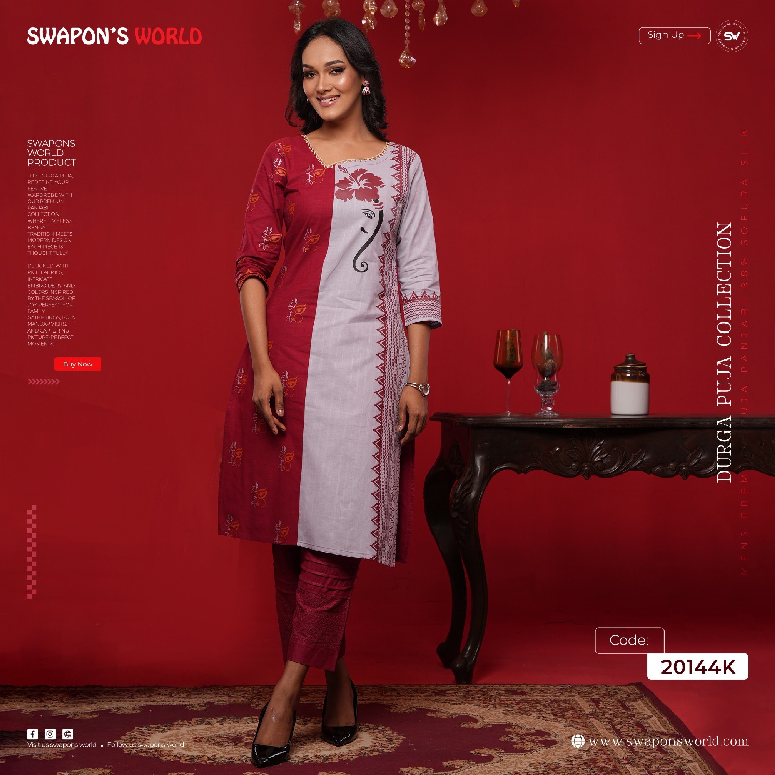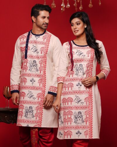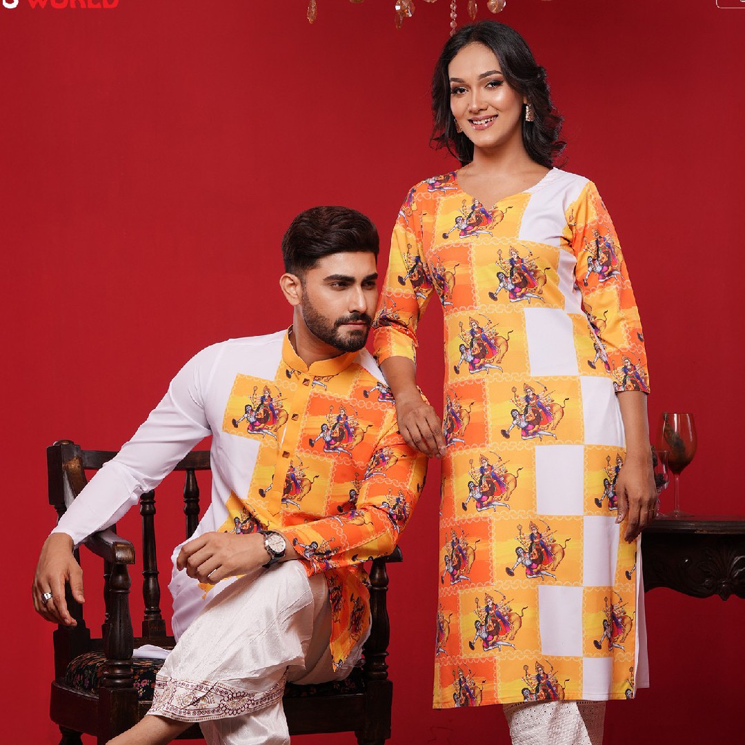 Only Panjabi & Kameez) Couple Matching Printed Panjabi & Kameez-20146C