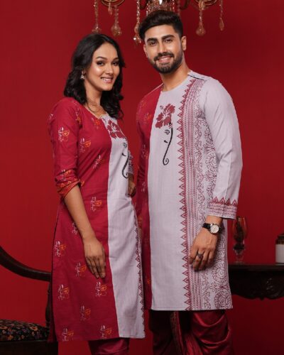 Only Panjabi & Kameez) Couple Matching Printed Panjabi & Kameez-20129C