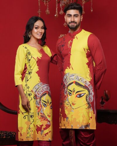 (Only Panjabi & Kameez) Couple Matching Sublimation Printed Panjabi & Kameez-20194C