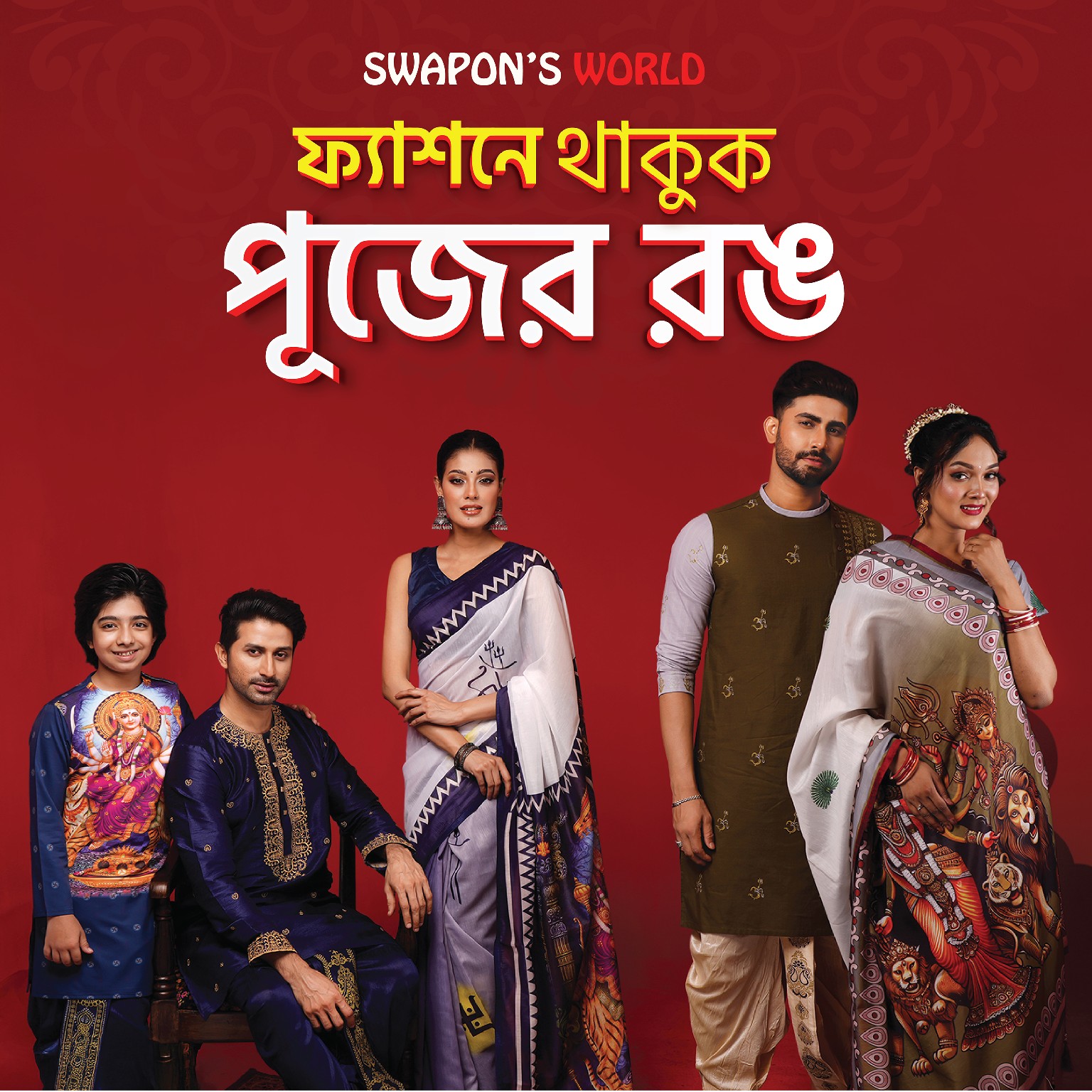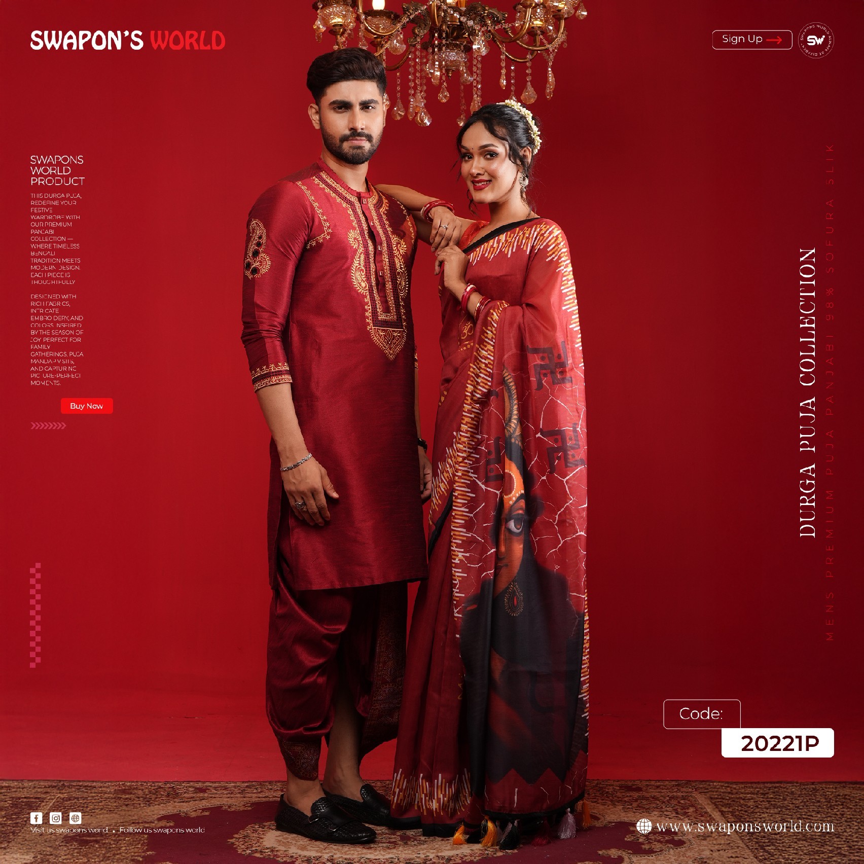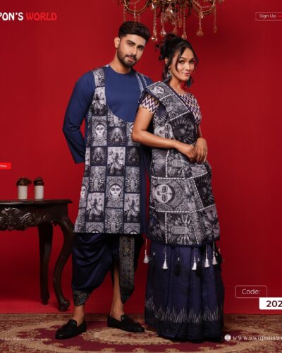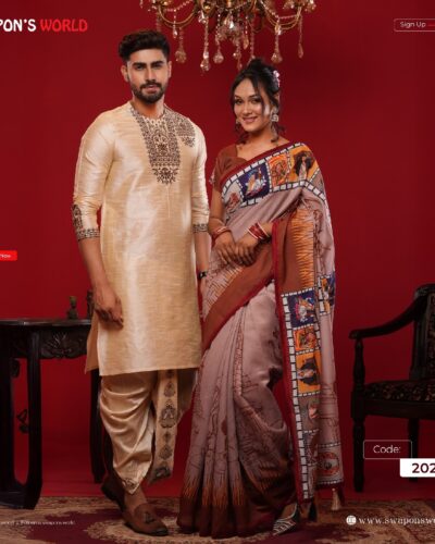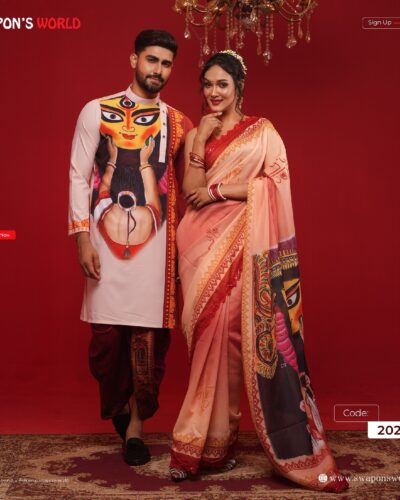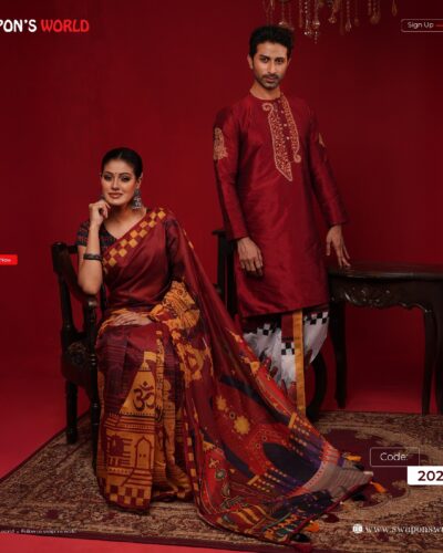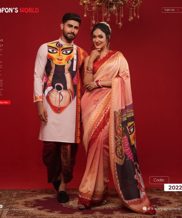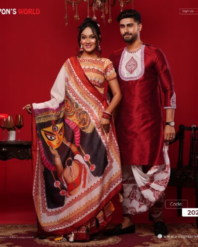 (Only Panjabi & Saree) Couple Digital Print Panjabi & Half Silk Saree -20227P
